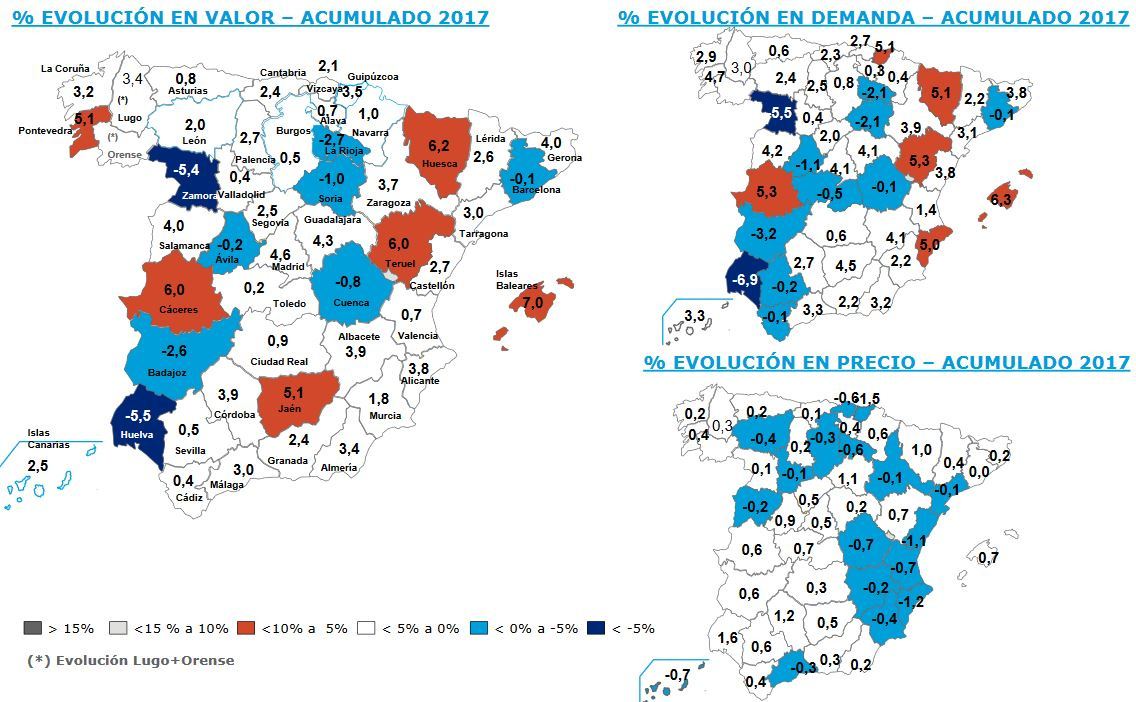 La evolución del mercado por provincias en lo que llevamos de 2017 se puede ver en el siguiente mapa: