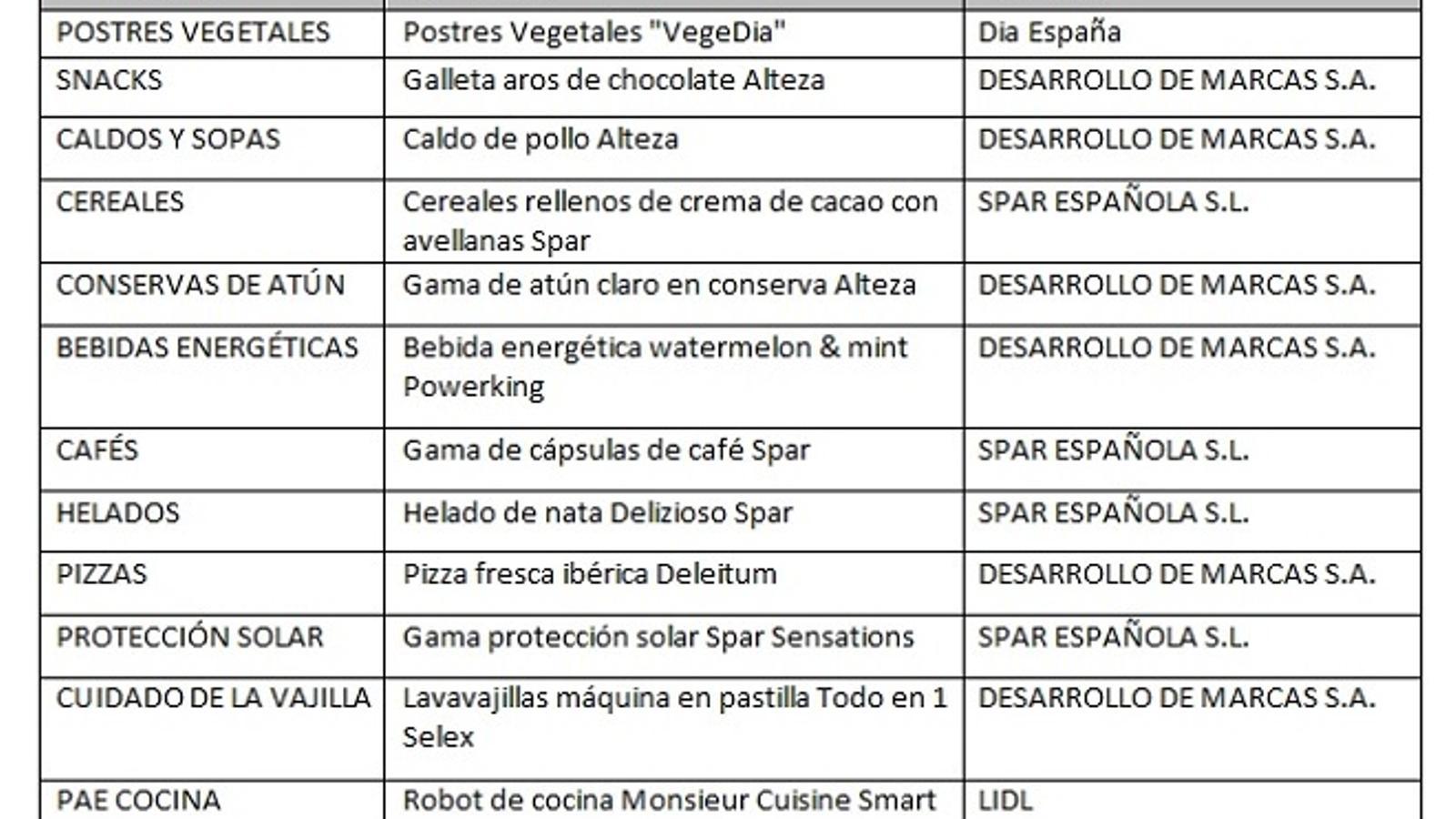En concreto, estos son los 12 productos de marca distribuidor galardonados este año: