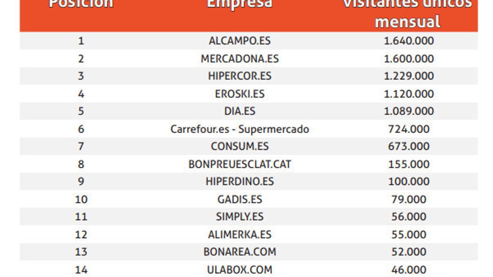 Este análisis incide en el notable crecimiento que ha experimentado la gran mayoría de supermercados, ya que, según se puede observar en el ranking hasta el Top 5 (se suman Eroski y Dia a las cadenas ya citadas), recibieron más de un millón de visitantes únicos al mes.
