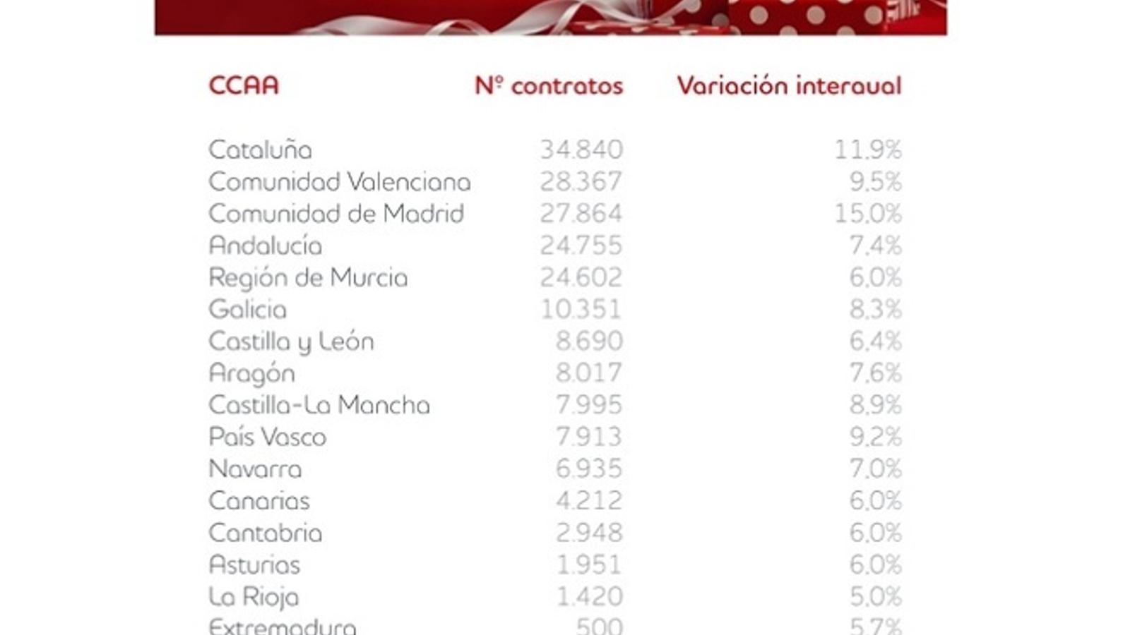 Por debajo de los 8.000 empleos se posicionan el País Vasco (unos 7.900 contratos) y Navarra (más de 6.900). Tras ellas, con un nuevo escalón en el número de contratos se ubicarían Canarias (4.200 firmas), Cantabria (casi 2.950), Asturias, donde se esperan alcanzar cerca de las 1.950 contrataciones, y La Rioja, con la previsión de más de 1.400 nuevos puestos de trabajo.