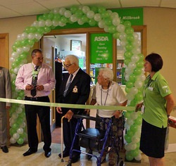 El corte de la cinta del nuevo supermercado de Asda en Soham, Cambridgeshire (Reino Unido), corrió a cargo de dos potenciales clientes del centro con 93 años de edad cada uno. La cadena británica ha abierto un establecimiento en una residencia de ancianos, en Millbrook House.