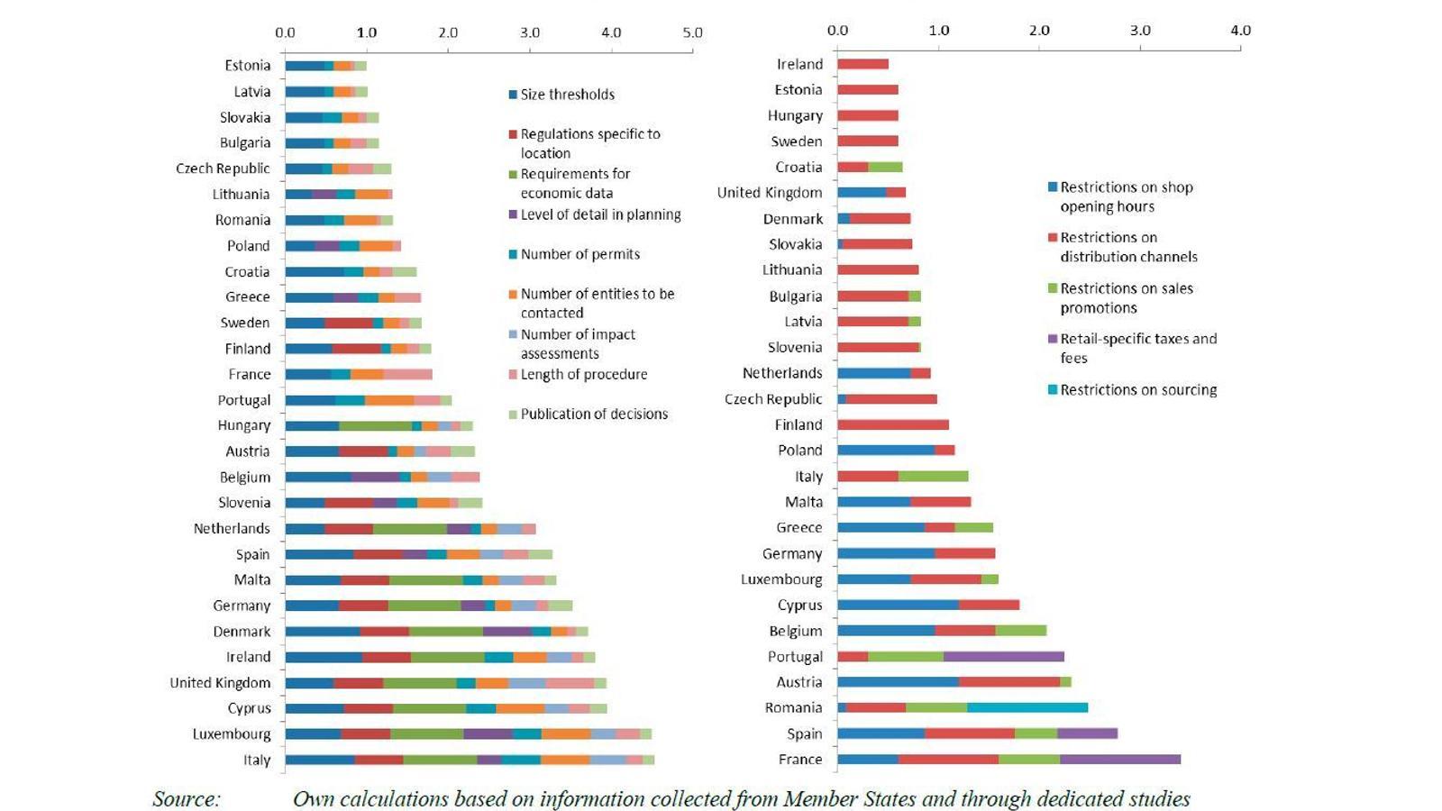 Sobre los horarios comerciales, Bruselas advierte de que "el ecommerce está cambiando significativamente los hábitos de consumo y las tiendas físicas pueden tener problemas para mantenerse frente a la competencia del comercio electrónico". Por eso, demanda a las Administraciones más "flexibilidad" y unas reglas de juego más equilibradas con el ecommerce. "En Finlandia, los horarios comerciales han sido recientemente liberalizados por completo, con un impacto muy positivo en el empleo y la competencia", pone como ejemplo Bruselas. Junto a Finlandia otros 12 países de la UE ya han liberalizado los horarios, entro otros, Suecia, Irlanda, Portugal o Italia. España se encuentra a la cola de restricciones, con una regulación de horarios fragmentada en 17 normativas autonómicas, a la que se suman restricciones locales.
