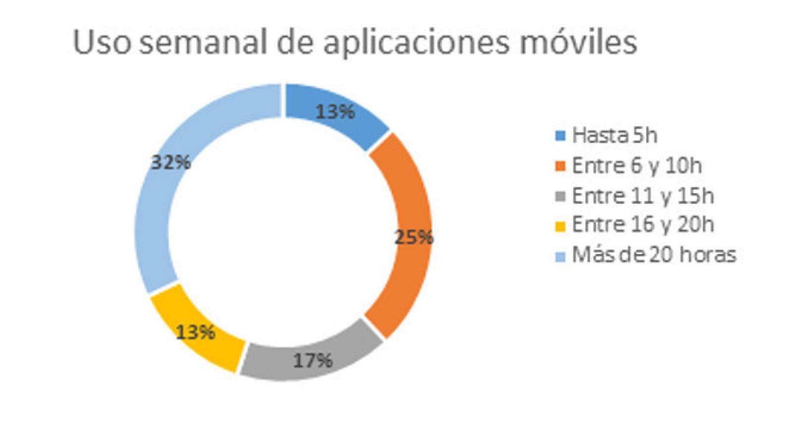 Desde hace ya una década, la presencia de las aplicaciones en los dispositivos de los españoles ha ido al alza, así como el tiempo de uso de las mismas. Este informe indica que un tercio de los españoles dedica más de 20 horas a la semana (casi un día) a navegar por apps móviles. Y, en el caso de los millennials, este número de horas aumenta hasta las 28 horas semanales, 12 más que las destinadas por los mayores de 55 años.