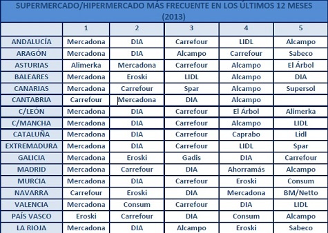 Además, Mercadona es la cadena más frecuentada en 13 de las 17 comunidades. De esas cuatro salvedades, en dos hay matices que aclarar. A País Vasco aún no ha llegado (lo hará en unos meses) y en Navarra apenas lleva un año de actividad.