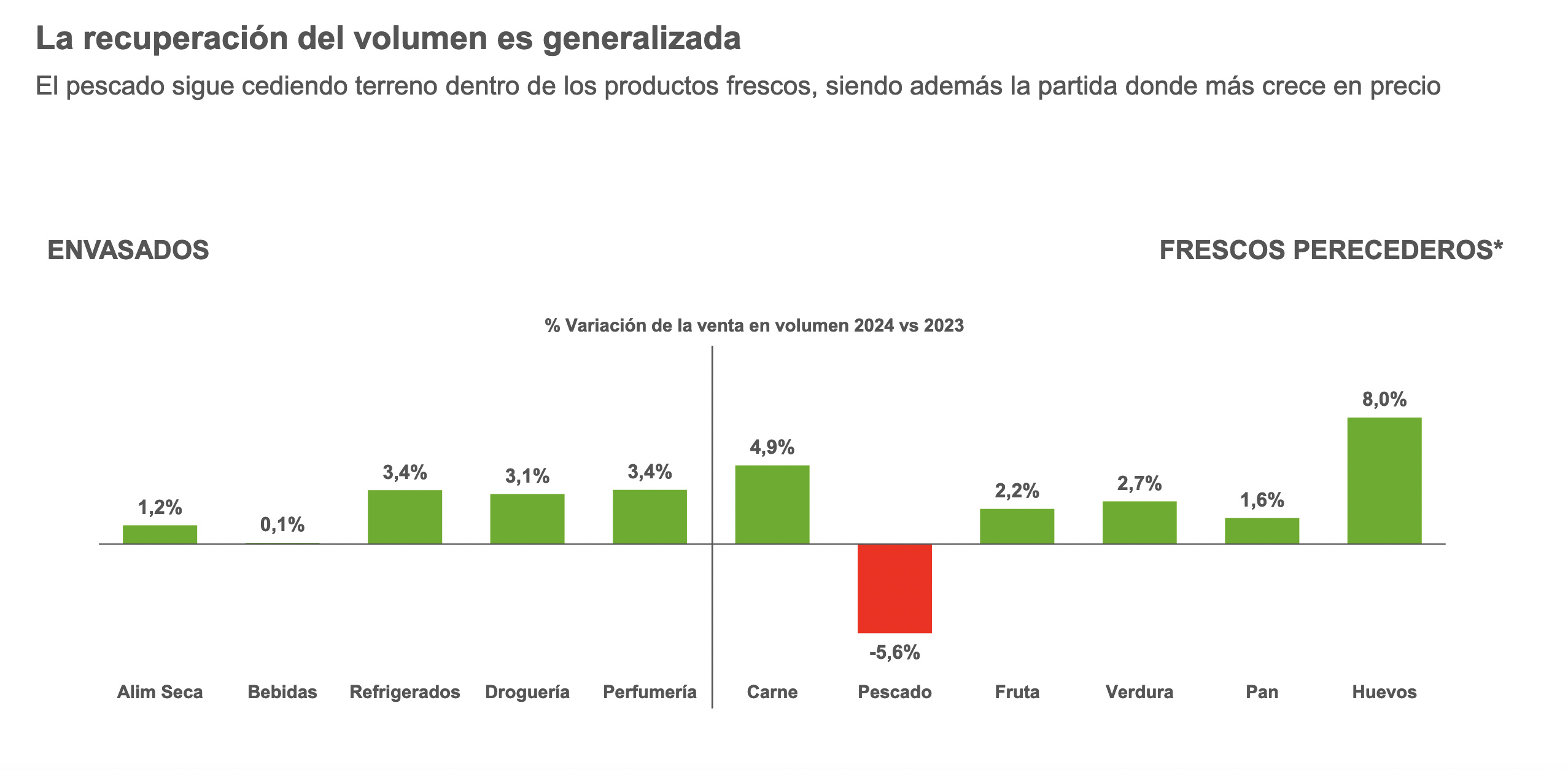 Esta recuperación ha sido generalizada en todas las categorías con la única excepción del pescado, que cae el 5,6% —influido por los incrementos de precio—.