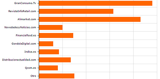Preguntados los encuestados por los portales de noticias sectoriales que han visitado en los tres últimos meses, la primera opción escogida es FoodRetail (83,5%), seguida de Alimarket.es (74,8%) y RevistaInfoRetail.com (54,8%).