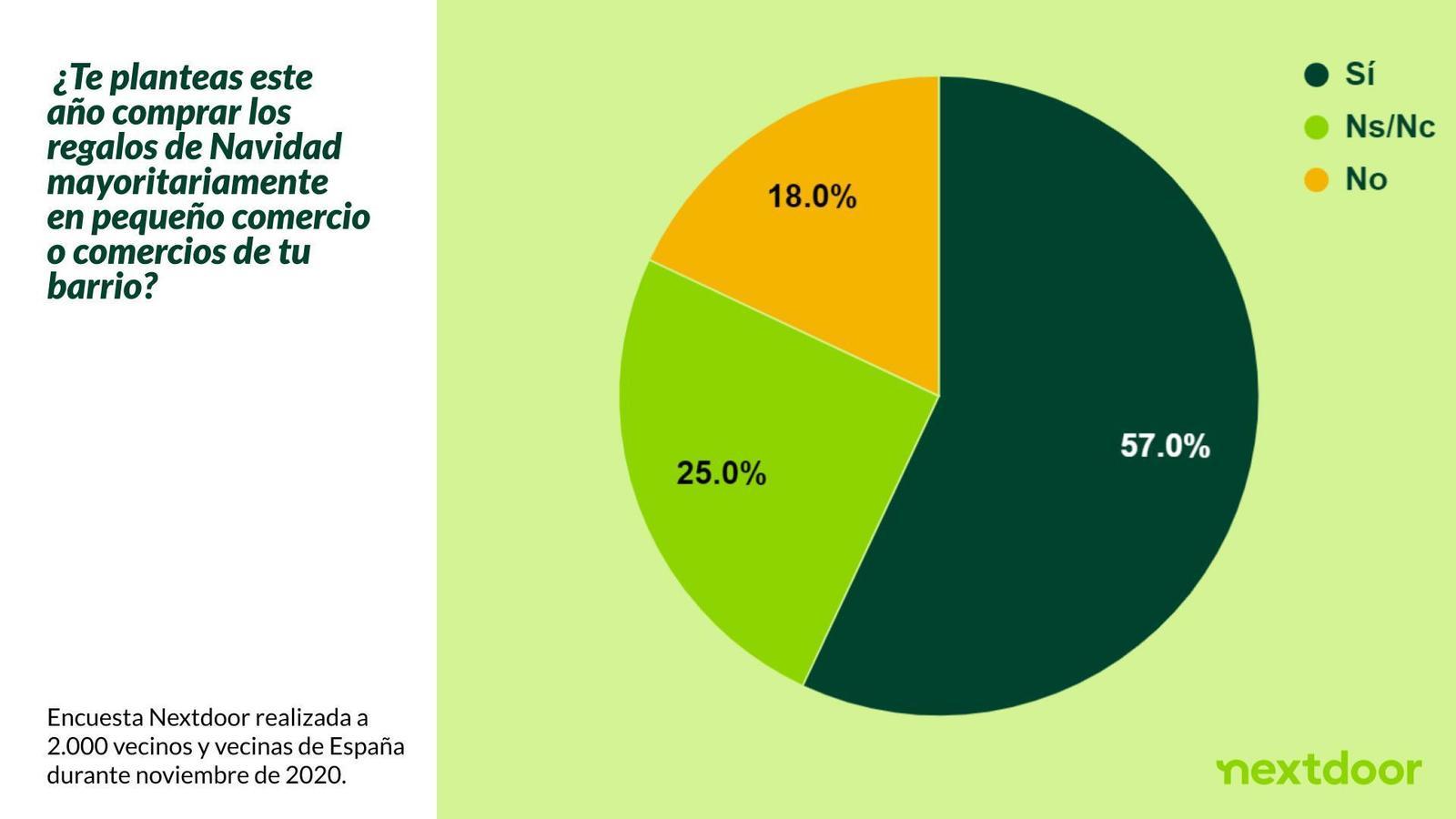 Los españoles han aumentado sus compras de proximidad como consecuencia de la pandemia. El 76,1% afirma que opta más por las tiendas de su barrio para realizar sus compras, y el 89,9% valora más el comercio local que antes de la llegada de la Covid-19, según dos encuestas realizadas por la app Nextdoor.