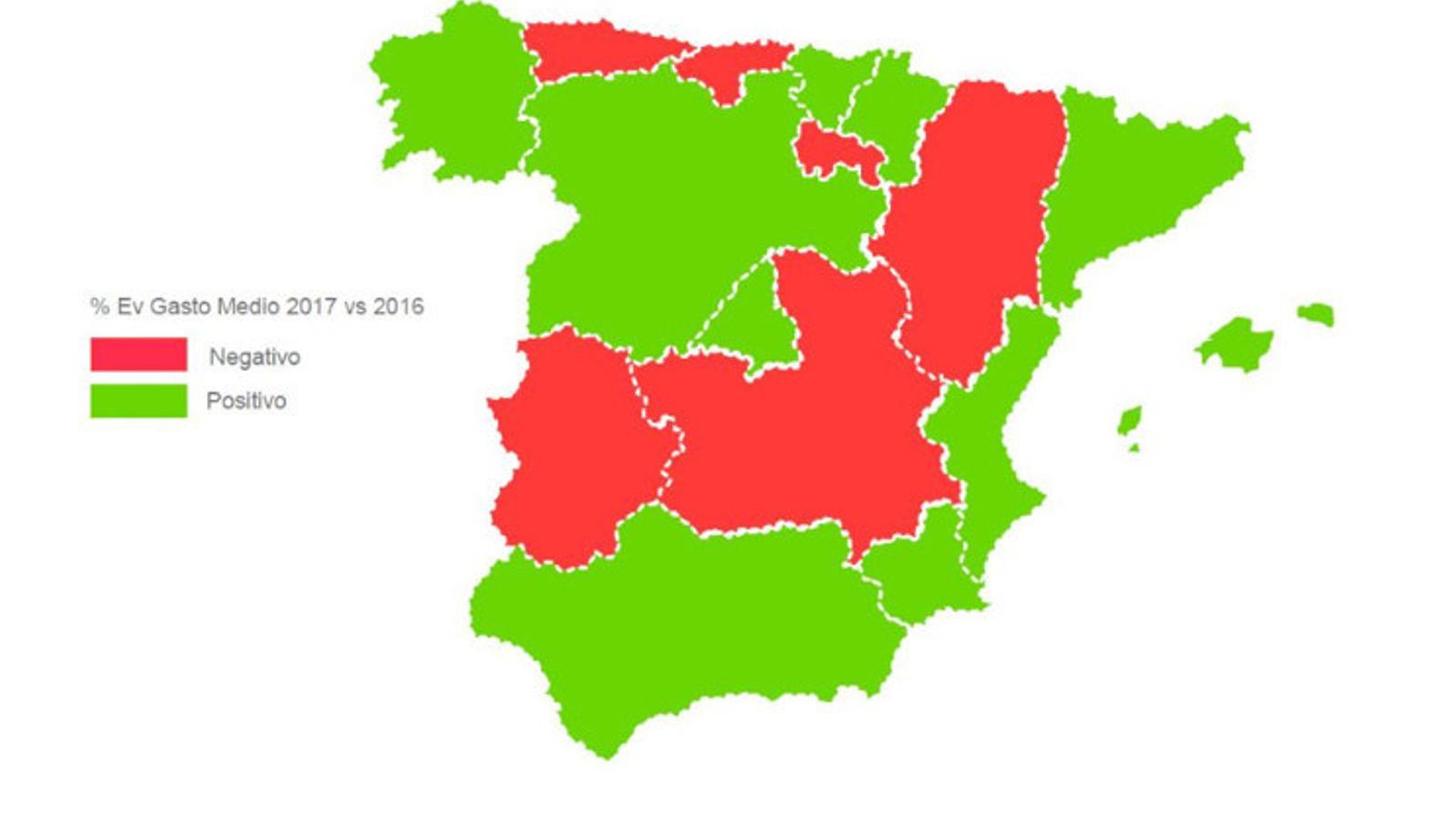 También en positivo le siguen de cerca Galicia y País Vasco, con 4.574 y 4.528 euros de gasto medio, respectivamente, lo que supuso en la primera de estas regiones un 1,2% más que el año anterior y en la segunda el 2,2% por encima del dato de 2016.
