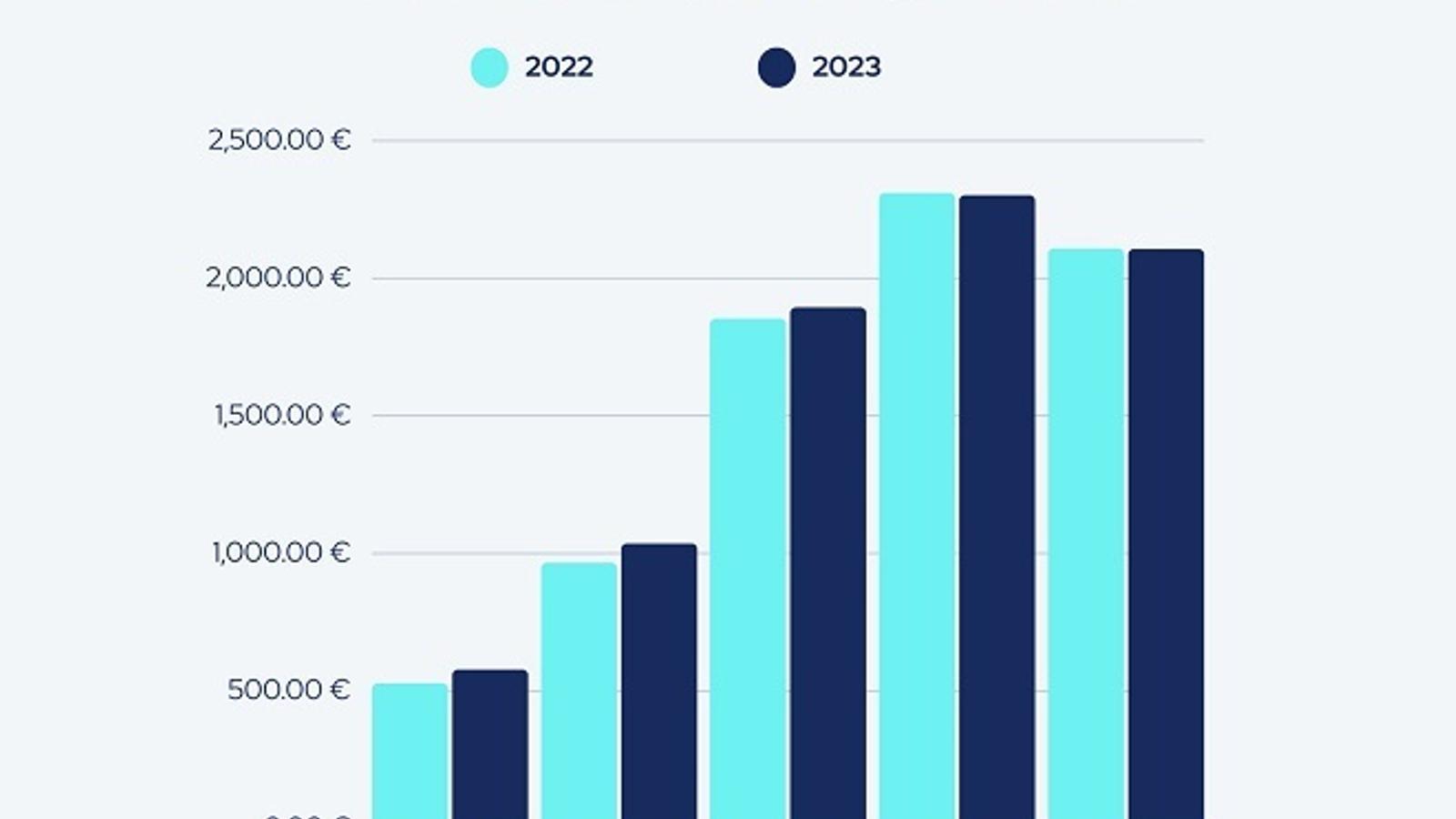 En posiciones intermedias se encuentran los grupos de edad entre 25 y 34 años, con un presupuesto de 1.036,52 euros; de 35 a 44 años, con 1.894,64 euros y entre 55 y 65 euros, con 2.107,17 euros.