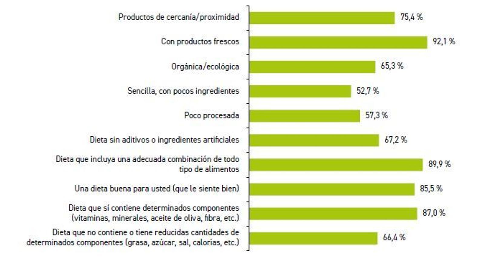- Sostenibilidad - Los consumidores cada vez dan más importancia al hecho de que un alimento se haya producido de forma sostenible. Así, tres de cada cuatro españoles da importancia a este hecho. La mitad de ellos está dispuesto a pagar más por estos alimentos.