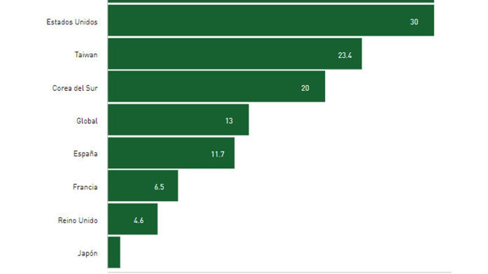 El ecommerce mundial aumenta un 13% y supone un 6,3% del mercado global de gran consumo. Los países que más han contribuido a este crecimiento han sido China y Estados Unidos, que crecen un 30% ambos, seguidos de Taiwan (+23,4%) y Corea del Sur (+20%). Los países asiáticos son en los que la cuota de