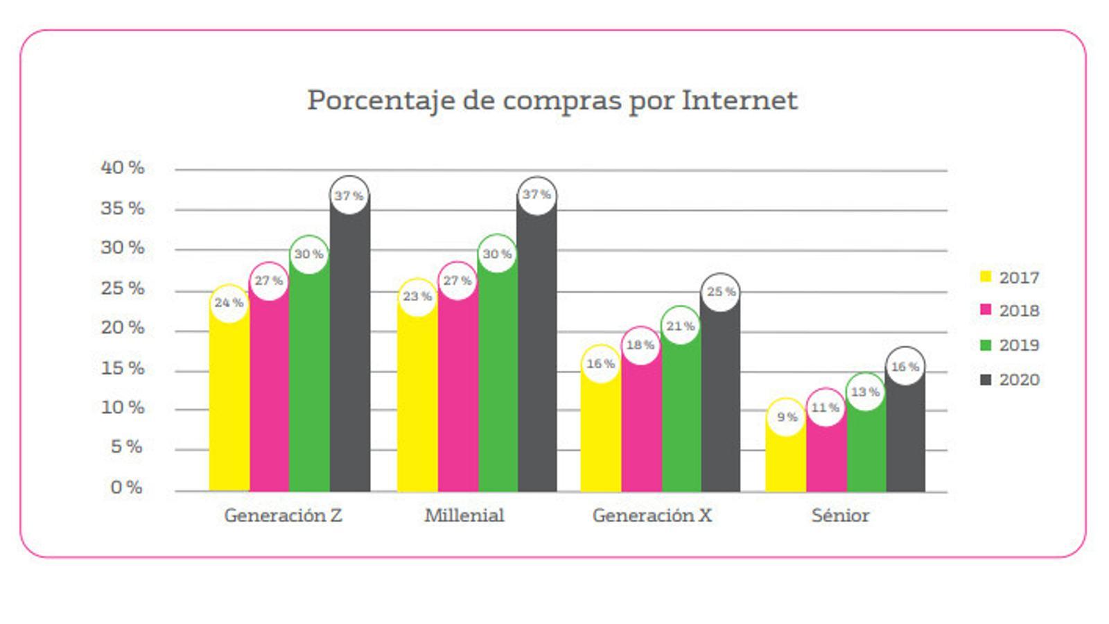Noviembre es el mes que registra el mayor número de compras online de todo el año, incluso por delante de diciembre, mes de mayor consumo tradicionalmente. Este dato encuentra su explicación en fenómenos ya consolidados en nuestro país durante este mes como el Día del Soltero, el Black Friday o el Cyber Monday. La tendencia durante 2020 -año marcado por la crisis sanitaria- es de un aumento generalizado del porcentaje de compras realizadas por Internet. En este contexto, los mayores de 60 años, a pesar de que constituyen la generación que menos gasto con tarjeta destina a compras online, es la que más está creciendo en términos relativos. De hecho, sus compras en la red han pasado del 9% en 2017 al 16% en 2020, con un incremento del 78%.