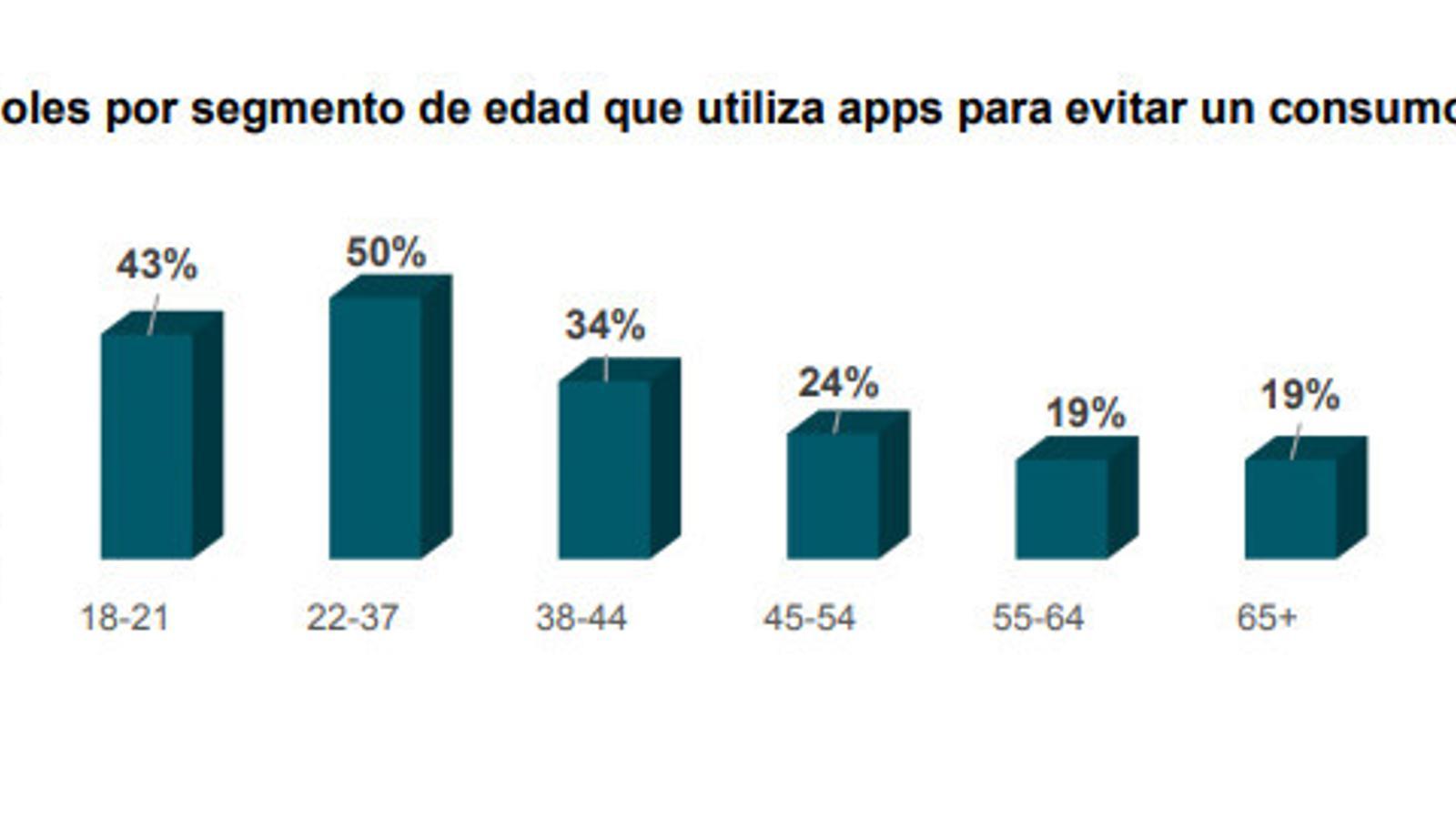 Este porcentaje aumenta al 50% en el caso de los jóvenes con edades comprendidas entre los 22 y 37 años, 19 puntos por encima de la media europea (31%) en este mismo segmento de edad. Seguidamente se sitúan aquellos que tienen entre 18 y 24 años (43%), mientras que, en el caso de los mayores de 55 años, dos de cada diez reconocen emplear también las nuevas tecnologías para controlar su consumo.