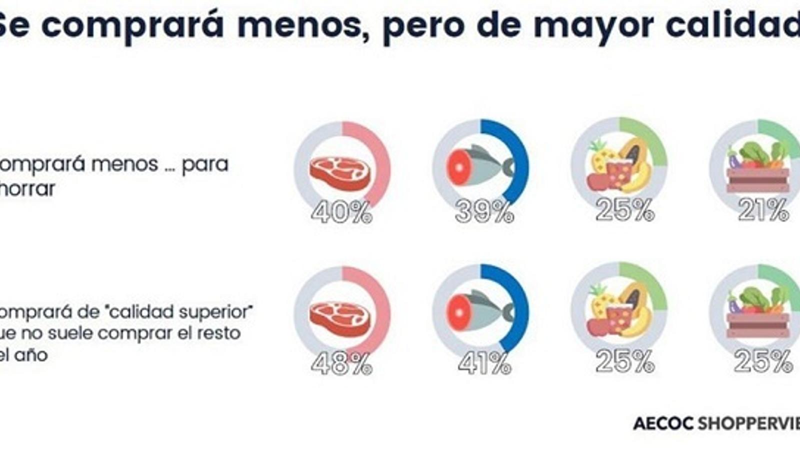 En concreto, por categorías, el informe muestra que el 40% de los consumidores prevé comprar menos carne en busca de ahorro, si bien el 48% invertirá en carnes de una calidad superior a las que compra el resto del año.