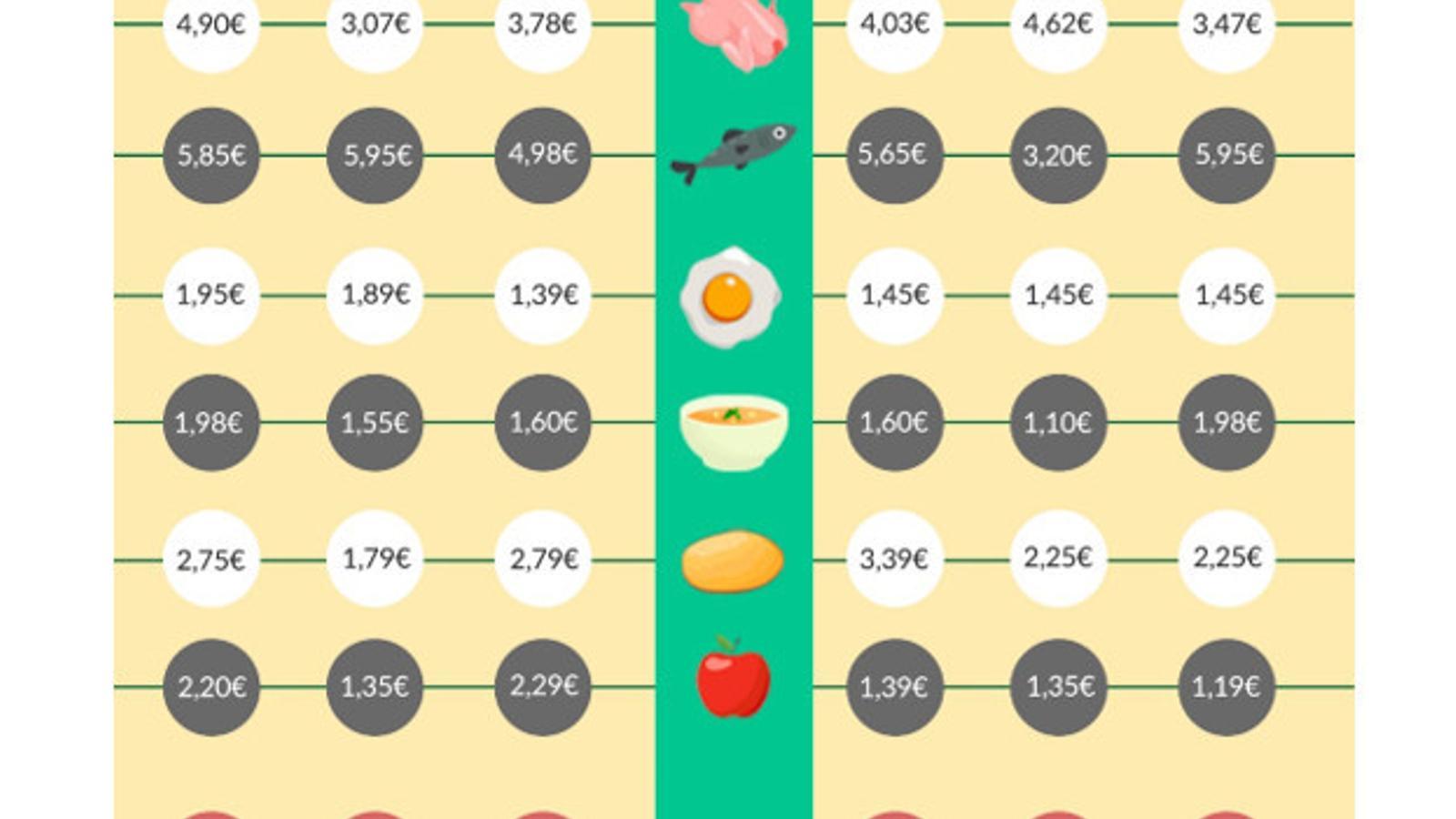 precios de 32 alimentos sugeridos en cuatro menús para ponerse a dieta.