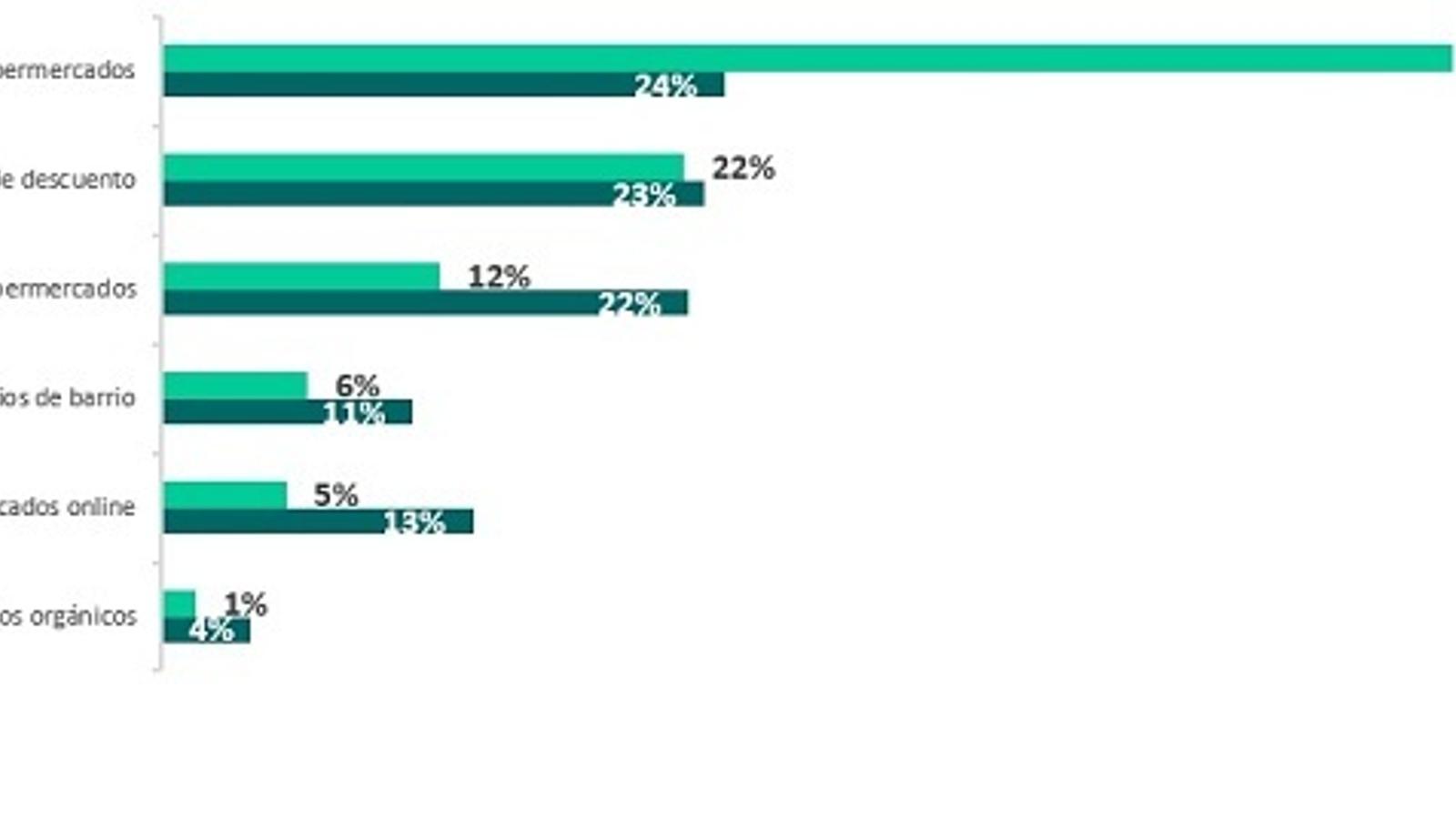 Este análisis indica también que, en relación a hace un año y de forma generalizada en Europa, los supermercados no solo se mantienen como el establecimiento de referencia para realizar la compra habitual de alimentos, sino que han reforzado su preeminencia y han logrado captar más clientes que su competidor más relevante, las tiendas de descuento.