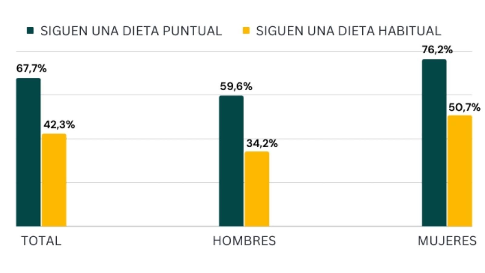 . Un 76% afirma seguir una dieta de forma puntual, mientras que más del 50% mantiene una pauta de alimentación especial de forma regular. La