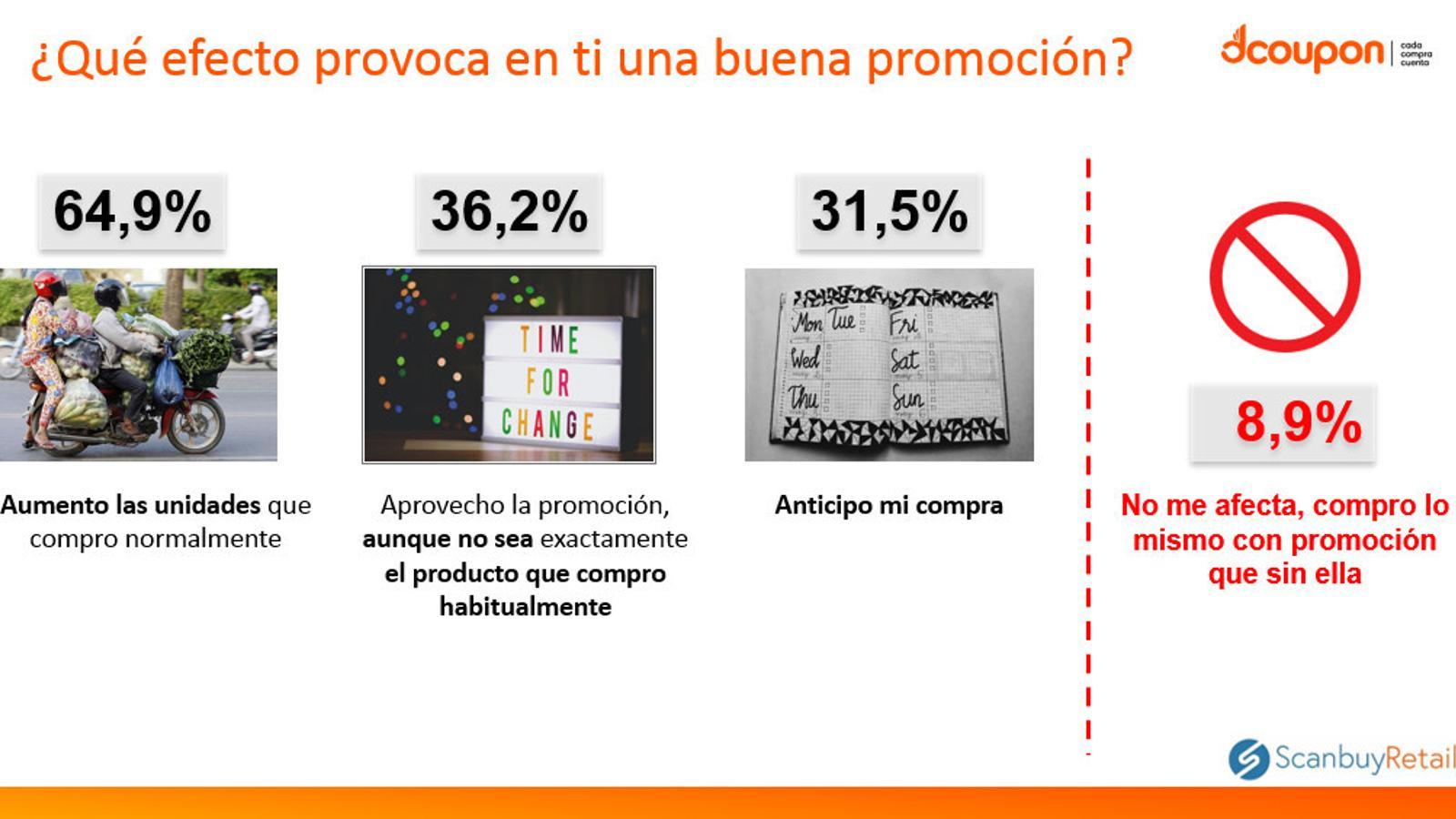 Respecto al papel que cumplen los cupones promocionales, este análisis detalla que a 1 de cada 5 compradores le gustan. El 68,8% utiliza una aplicación de cupones descuento; el 16,2% usa los que le dan en papel en el súper para otra compra y el 9,5% recibe un talonario en papel con descuentos de diferentes marcas. Pero al 72% los cupones en papel le parecen un "derroche de papel innecesario".