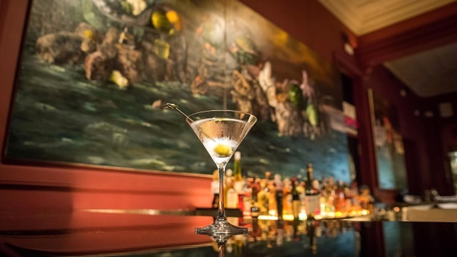 La absoluta protagonista del único Dry Martini de Madrid —bajo este nombre, y creados y dirigidos por Javier de las Muelas, hay más de una decena de locales en Europa, Asia y América— es su barra: diez metros con un acabado en laca negro piano —en honor a Gimlet (1982), el primer local de Javier— y rodeada de banquetas altas. Tres metros de la barra, la parte central, es exclusiva para preparar y oficiar el cóctel que identifica el emblema de la casa: el Dry Martini, desde su versión clásica a la más innovadora. Más allá de la barra, si el cliente prefiere pasar a la sala puede sentarse en un sofá que rodea el local y que se refuerza con mesas bajas que invitan a conversar y compartir. Además, no falta el mítico Dry Martini Counter, un marcador luminoso que contabiliza cada uno de los martinis que se sirven en el local madrileño —también lo tiene el resto de las sedes repartidas por el mundo—.