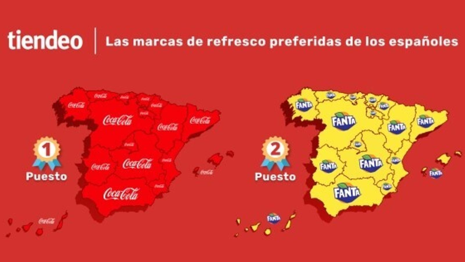 En cuanto a los refrescos, Coca-Cola sigue siendo la bebida reina indiscutible en toda España, acumulando el 30% del total de búsquedas. Fanta (12,1%) ocupa por unanimidad el segundo puesto del ranking.
