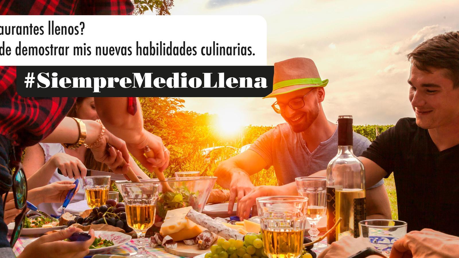 "#SiempreMedioLlena responde al deseo de la sociedad de buscar y compartir experiencias positivas que nos hagan sonreír; porque ahora es el momento de celebrar cada deseo, cada pequeña victoria que nos ayude a enfrentarnos con optimismo y esperanza a lo que pueda venir. Y qué mejor hacerlo que con vino", señala OIVE.